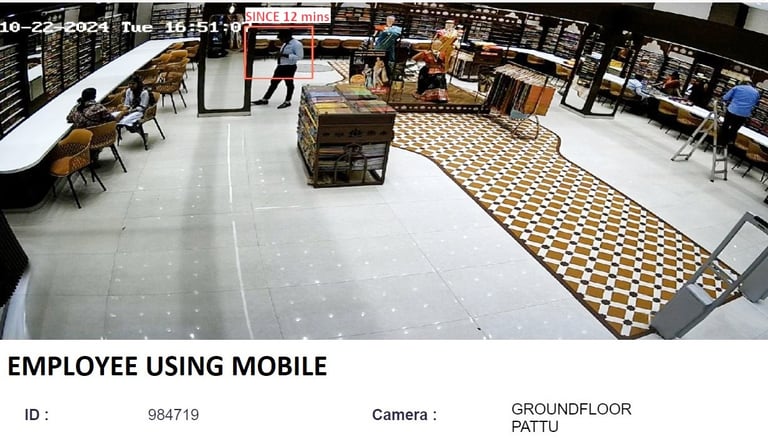 A retailer faced recurring issues with employees being distracted on their phones during work hours. Our AI identified patterns of phone usage behind the counter and flagged idle employees not attending to customers. Once addressed, the retailer saw a marked improvement in employee attentiveness. The system also detected employees congregating in the pantry for longer-than-allowed breaks, allowing management to restore productivity. As a result, customer interactions increased, and sales conversions improved by 15%.
