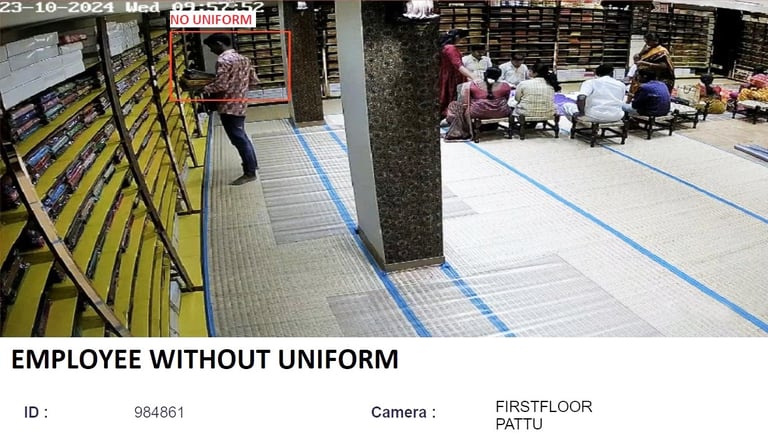 At a prominent fashion outlet, maintaining operational discipline and ensuring the in-charge followed protocols were critical to smooth operations. The AI system regularly flagged instances where the in-charge was not wearing their ID card or uniform, allowing for immediate correction to maintain professionalism and customer-facing standards. Furthermore, the system raised alerts when the in-charge was unavailable during crucial moments like handing over cash to the banker. By automating these checks, the store not only improved operational efficiency but also enhanced accountability, resulting in fewer errors, better compliance, and a more trustworthy shopping environment for customers.